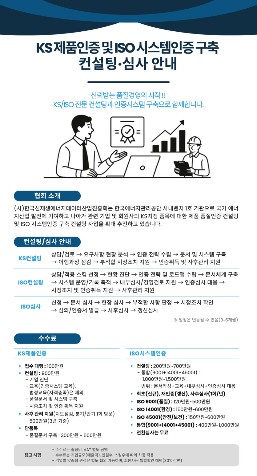 KS 제품인증 및 ISO 시스템인증 구축 컨설팅·심사 안내